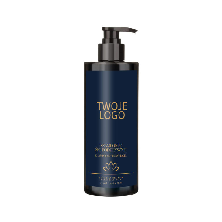 The product is perfect for hotels, guesthouses, and premium establishments. The gentle formula cleanses hair and skin, leaving them fresh, soft, and pleasantly scented. The translucent navy blue bottle with a practical pump allows for easy dispensing, and the label with printed logo gives the product an exclusive character and visual consistency with your brand.